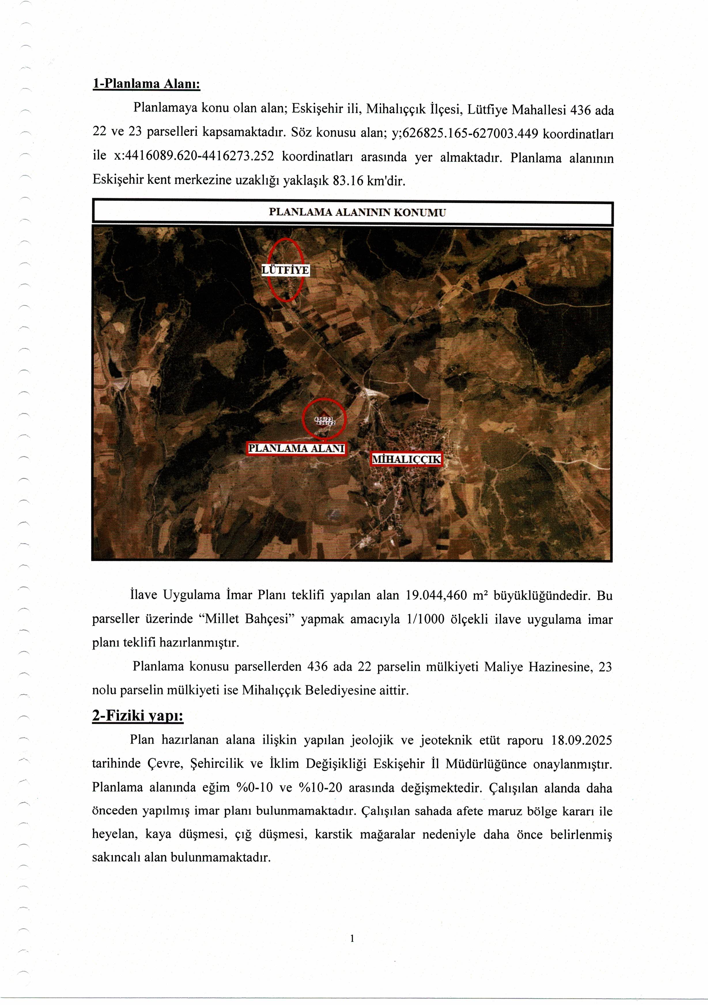 Mihalıççık İlçesi Lütfiye Mahalleleri sınırları içerisinde hazırlanan İlave İmar Planı 01.04.2026-01.05.2026 (dahil) tarihleri arasında 1 (bir) ay süre ile askıya çıkarılmıştır.