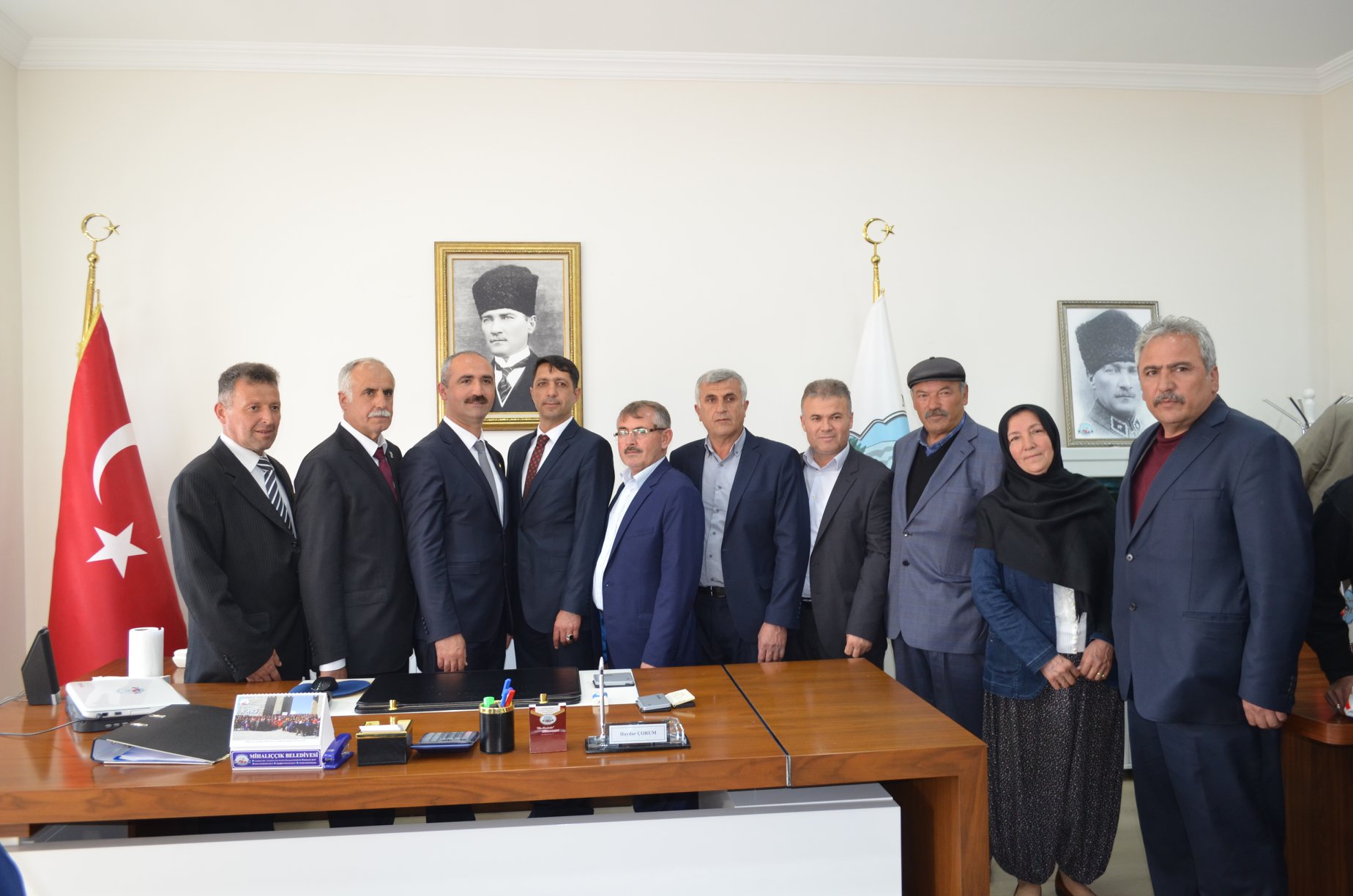 Mihalıççık Belediye Başkanımız Sayın Haydar ÇORUM 2014-2019 yılları arasında ilçemizde görev yapan Belediye Başkanı Sayın İsmail UYSAL'dan mazbatasını devir aldı.