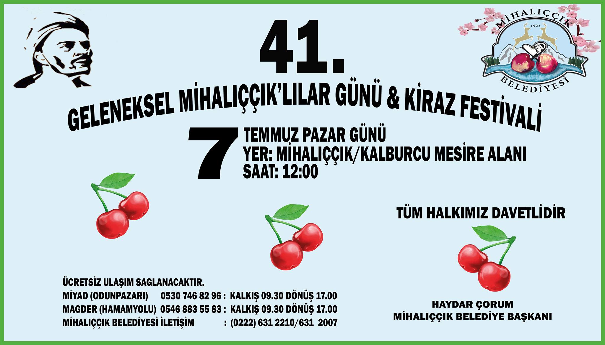 7 Temmuz 2019 Pazar Günü Mihalıççıklılar Günü ve Kiraz Festivali